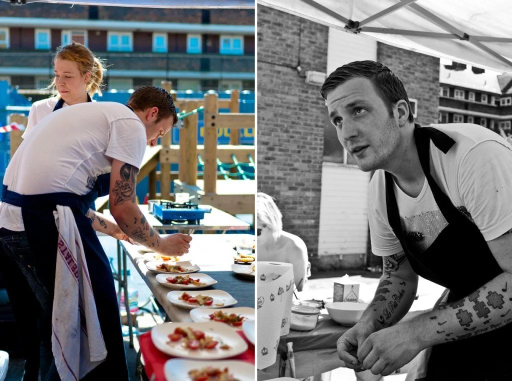Former Roganic Chef, Ben Spalding, hosted an outdoor street food restaurant ‘Stripped Back’ at Broadway Market Schoolyard (2012)